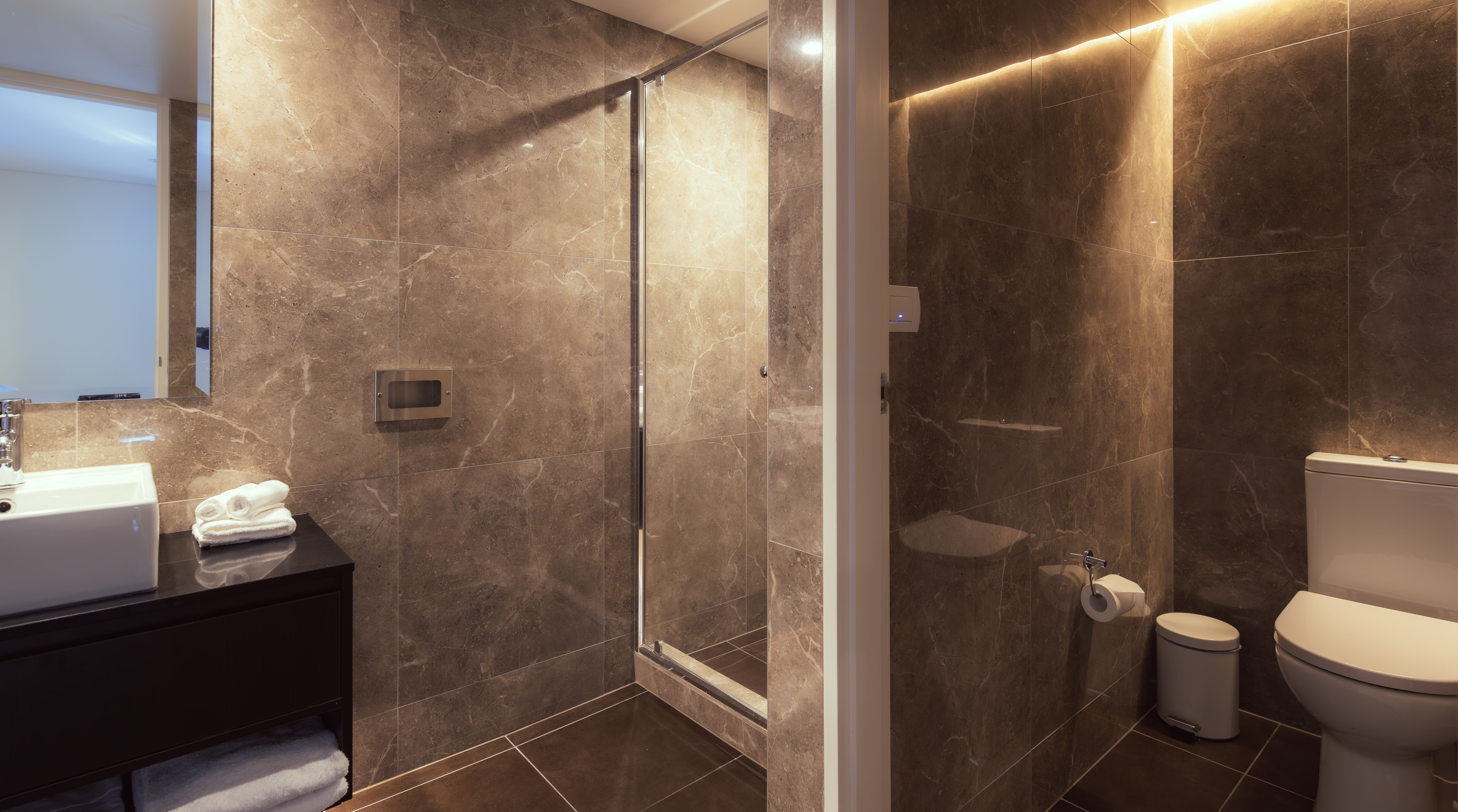 Bathrooms are wonderfully appointed with a large walk in shower, vanity and separate toilet.